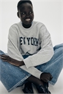 Топ оверсайз из толстовки с мягкой ворсистой изнанкой. Круглый вырез с ребристой отделкой, спущенные плечи и длинные рукава. Ребристые манжеты и подол.