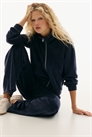 Джоггеры из мягкого велюра с эластичным поясом на завязках и широкими штанинами с застроченными складками спереди.
