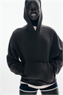 Топ большого размера из толстовочной ткани с мягкой начесом внутри. Двухслойный капюшон, карман-кенгуру, спущенные плечи и длинные рукава. Ребристые манжеты и подол.