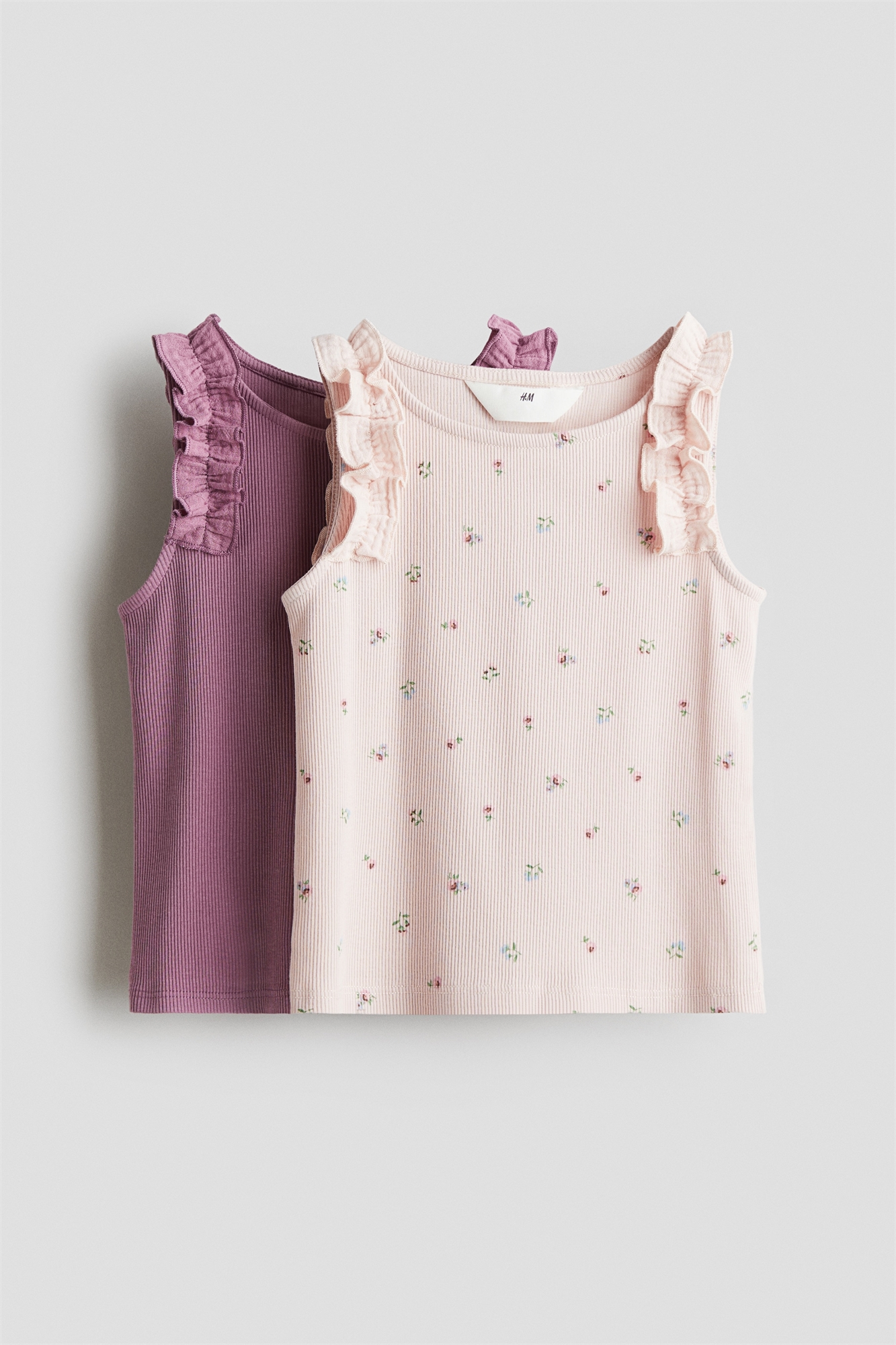 Топы без рукавов из ребристого хлопкового джерси с круглым вырезом и отделкой оборкой по плечам.