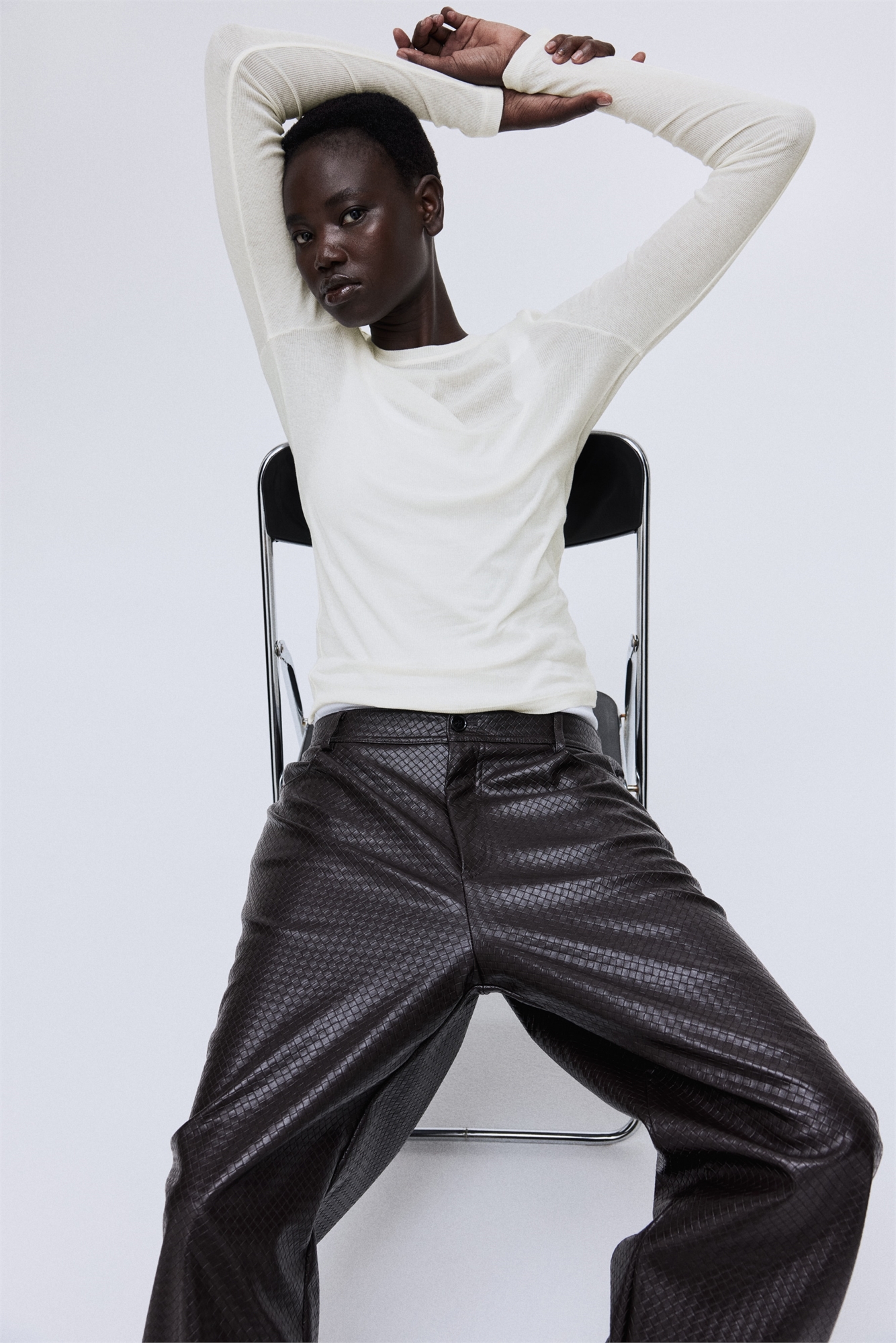 Облегающий топ из мягкого, ребристого хлопкового джерси пима. Круглый вырез с ребристой отделкой и удлиненные рукава.