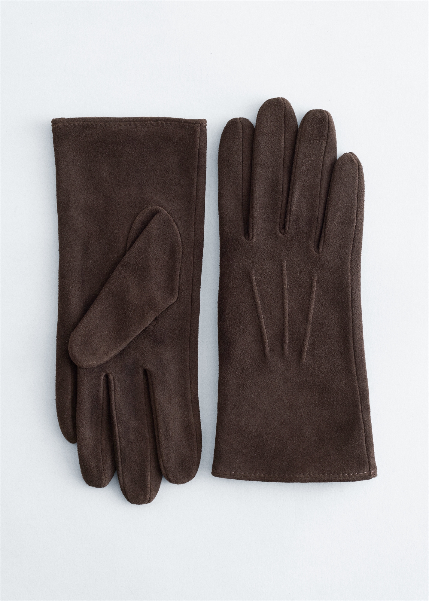 Эти перчатки изготовлены из эластичной замши с подкладкой из мягкой теплоизолирующей вискозы. Тыльная сторона руки украшена изящными вытачками.