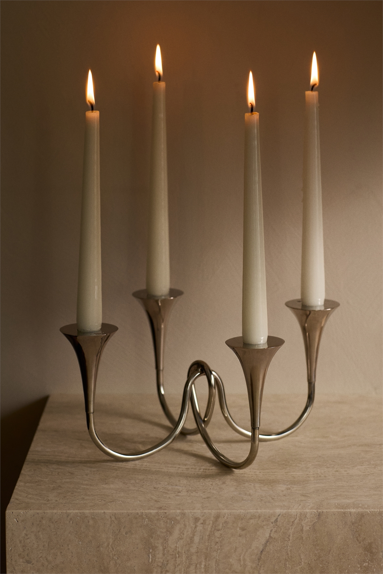 Стильный канделябр из металла с полированной отделкой в форме узла.