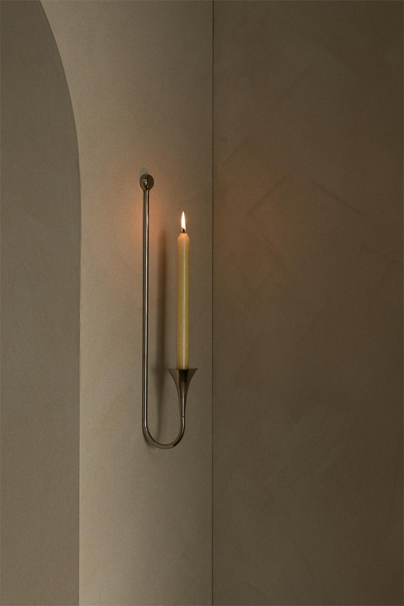 Металлическое бра с простым, но изысканным дизайном и подсвечником в форме трубы. Гвозди для подвешивания в комплект не входят.