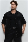 Джинсовая рубашка свободного покроя с короткими рукавами