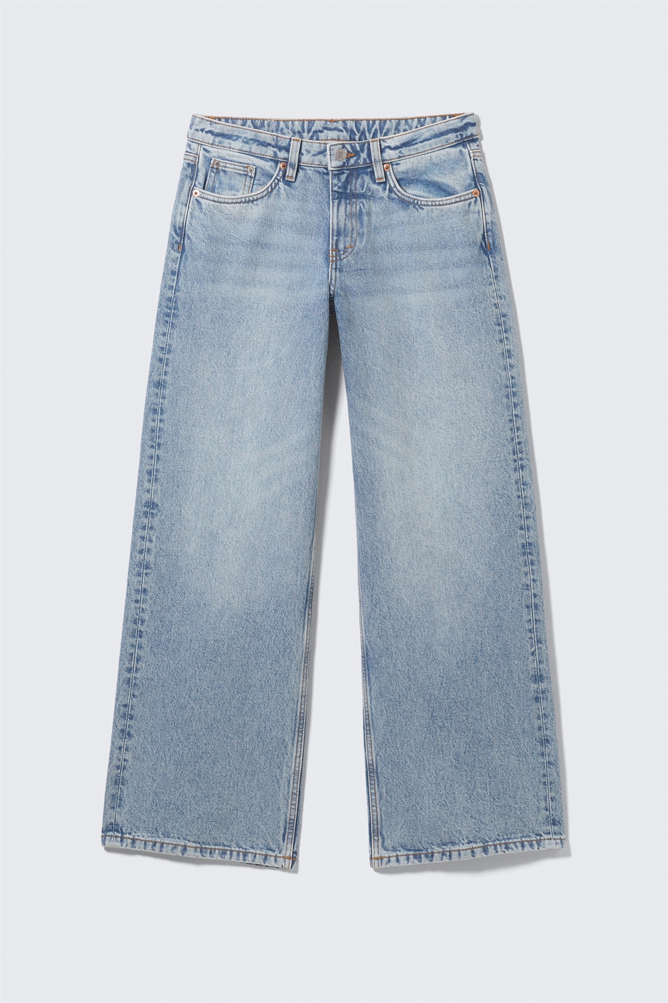 Джинсы с низкой посадкой, свободным кроем, широкой штаниной и полной длиной. Изготовлены из жесткого хлопкового денима с добавлением переработанного хлопка. Классическая конструкция с пятью карманами и ширинка на молнии.