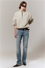 Зауженные джинсы со средней посадкой и обрезанной штаниной. Джинсы сшиты из комфортного эластичного денима, имеют классический дизайн с пятью карманами и застежку-молнию.