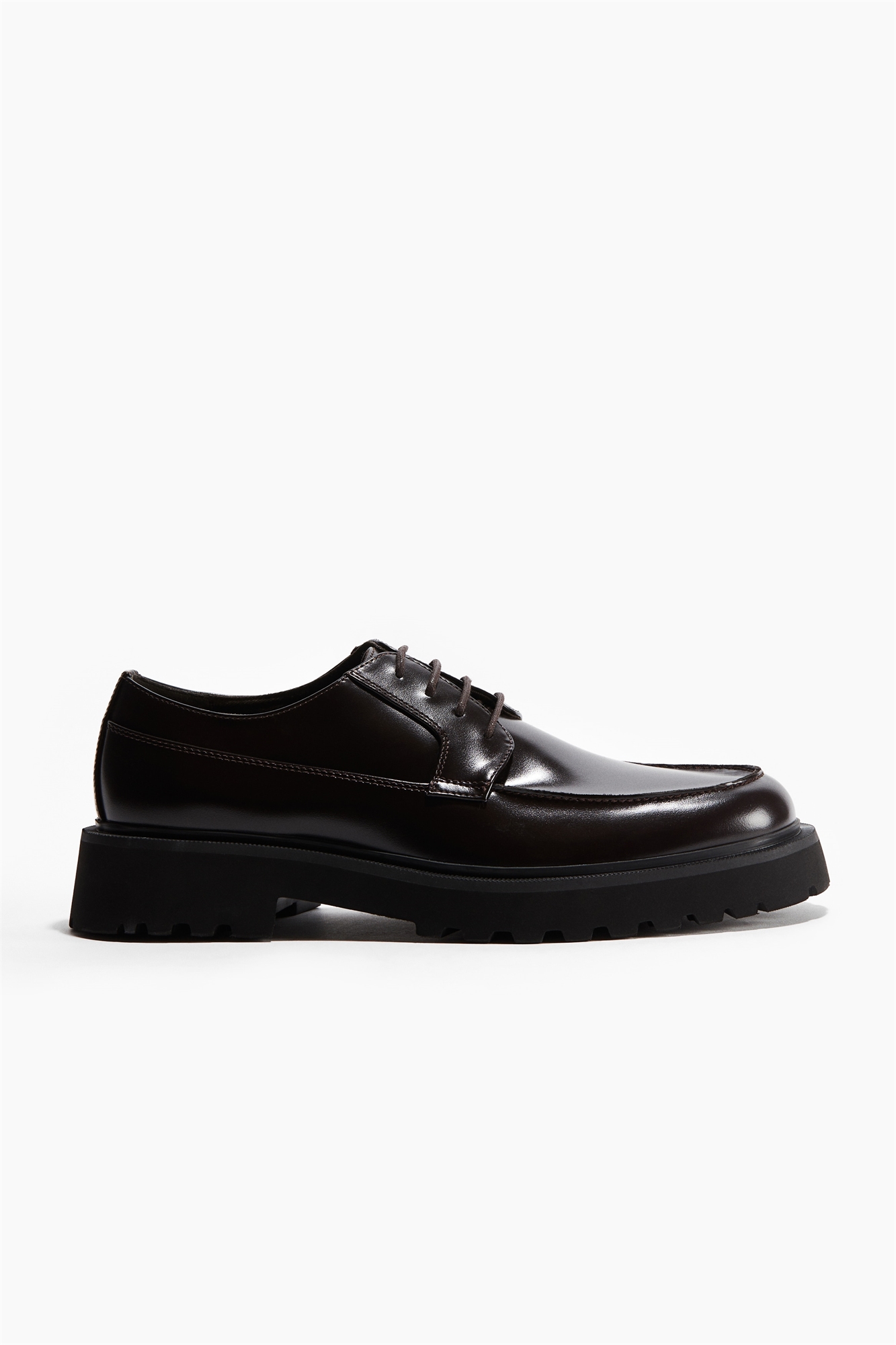 Туфли-дерби с закругленными носками и открытой шнуровкой. Подкладка из хлопкового канваса и толстая подошва с рисунком.