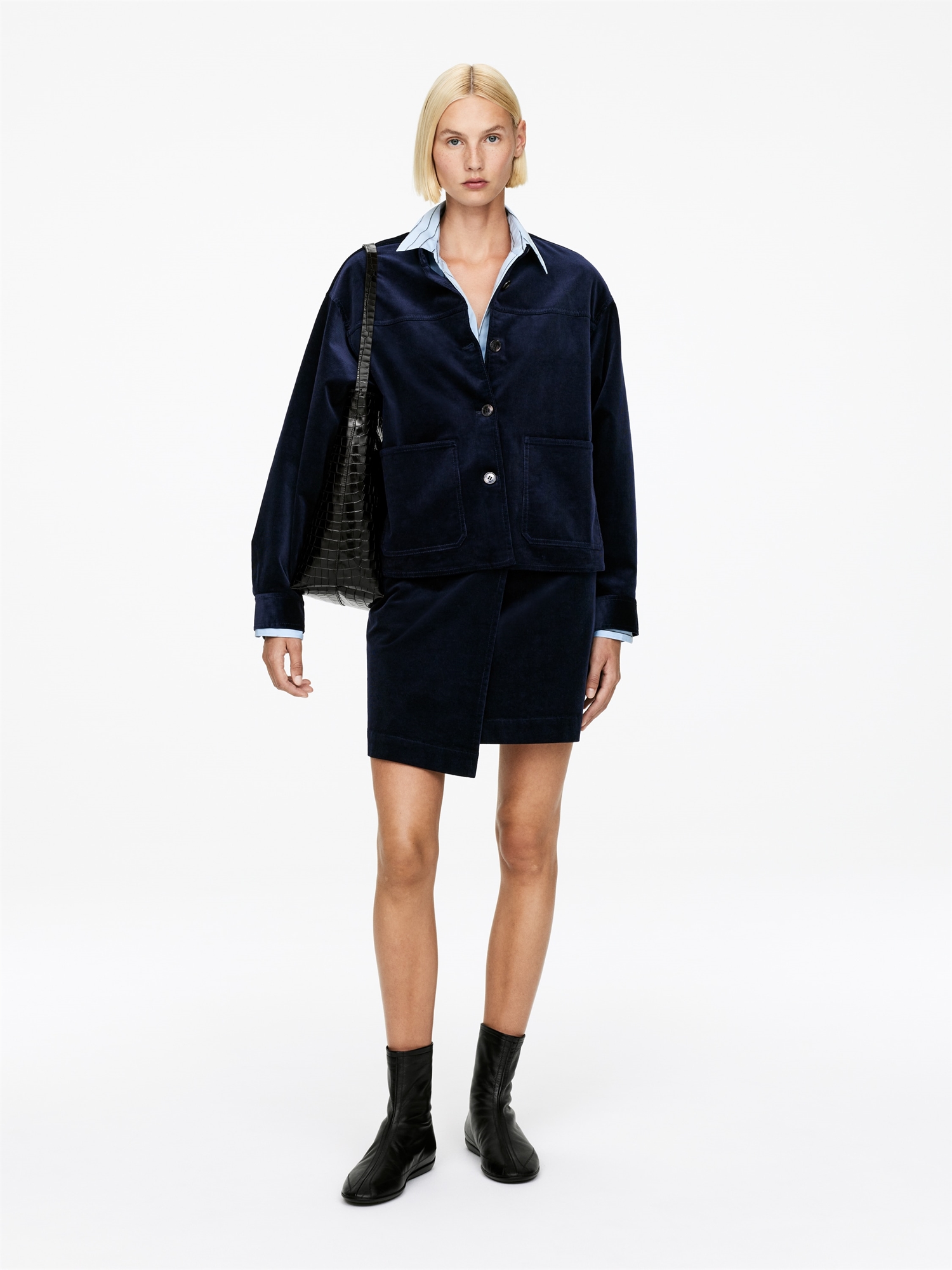 Вельветовая рубашка с передними карманами и застежкой на пуговицы. Обычный крой.