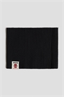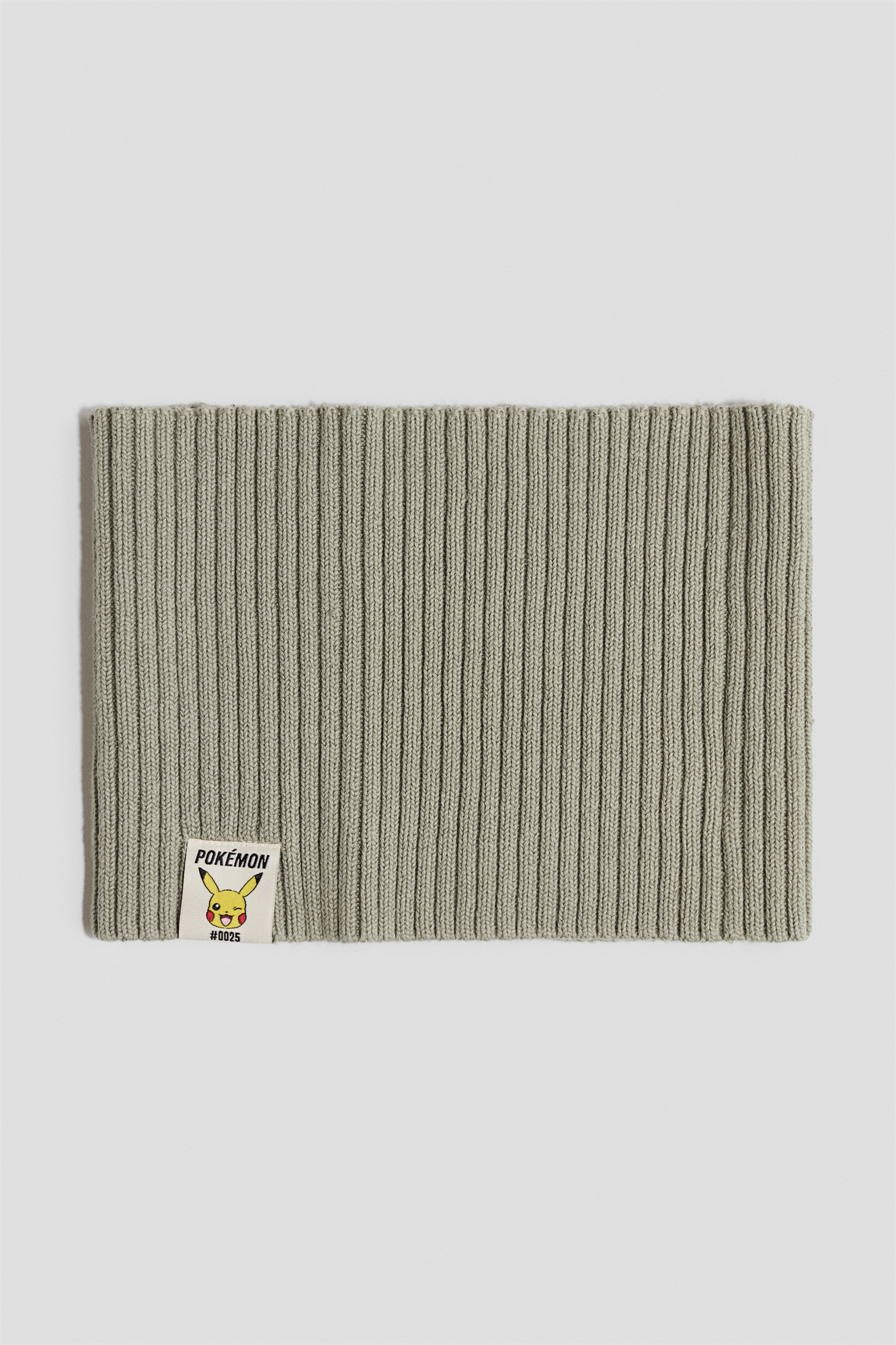 Шарф-труба из мягкого трикотажа в рубчик с небольшой аппликацией из ткани.