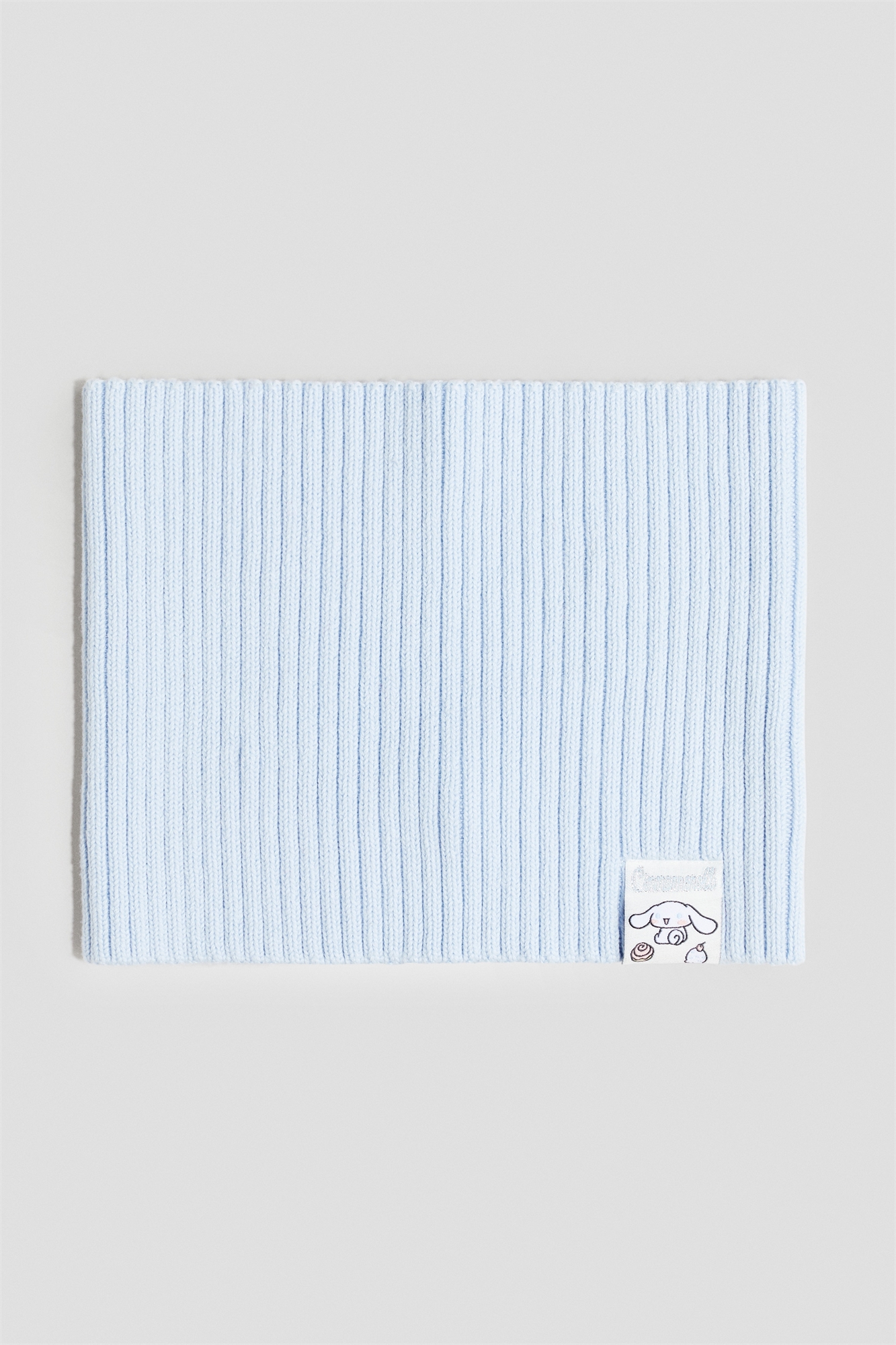 Шарф-труба из мягкого трикотажа в рубчик с небольшой аппликацией из ткани.