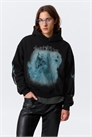Свободная графическая толстовка из мягкого хлопкового флиса. Модель имеет спущенные плечи, просторный капюшон и сборки по краям. В завершение - карман-кенгуру и ребристая отделка.