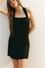 Короткое приталенное платье из плотного джерси с квадратным вырезом и широкими бретелями, перекрещивающимися на спине.
