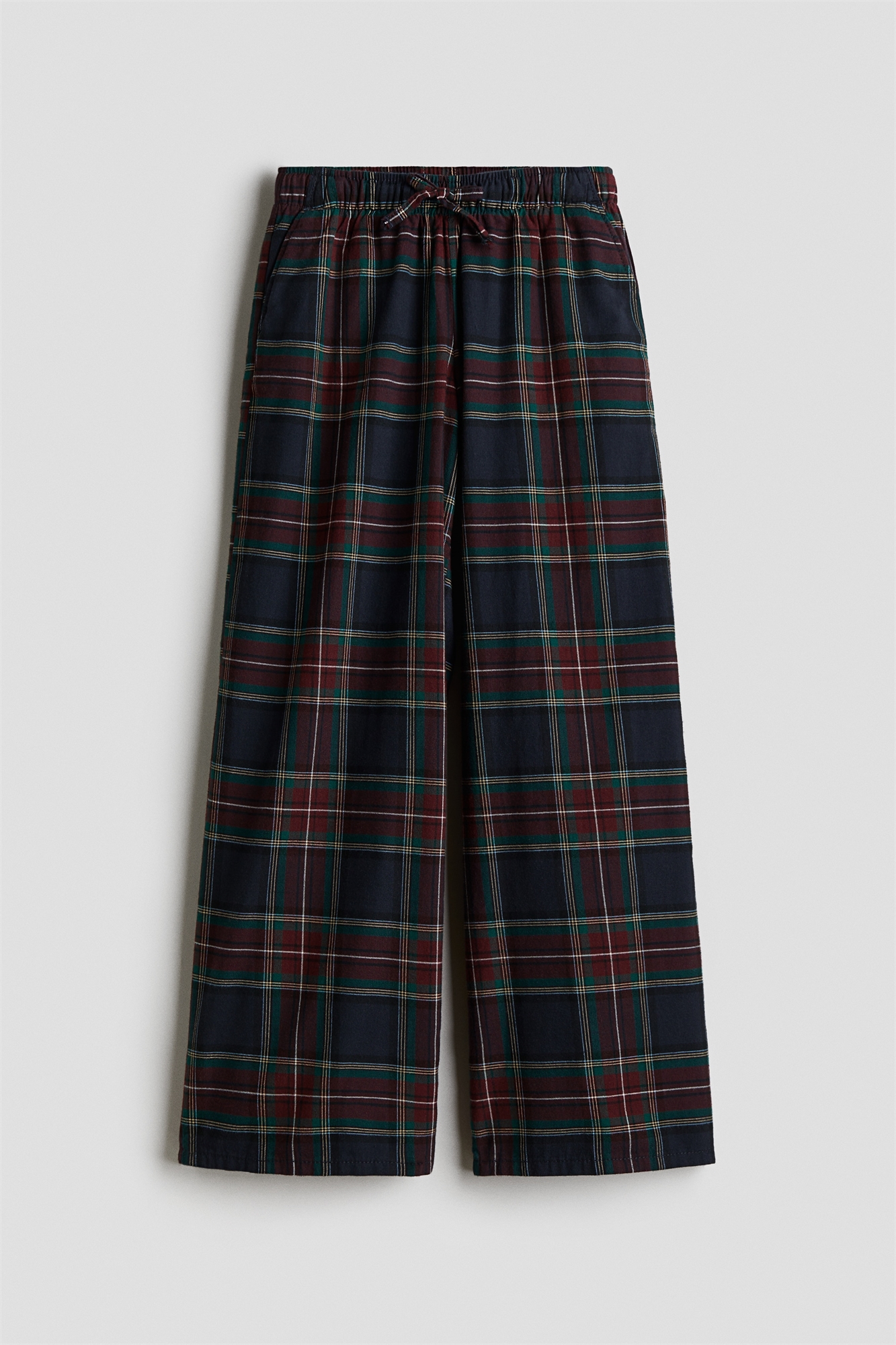 Брюки из мягкого хлопкового полотна, свободный крой в области бедер и талии, широкие штанины. Эластичная талия с утягивающим шнурком и неброские боковые карманы.