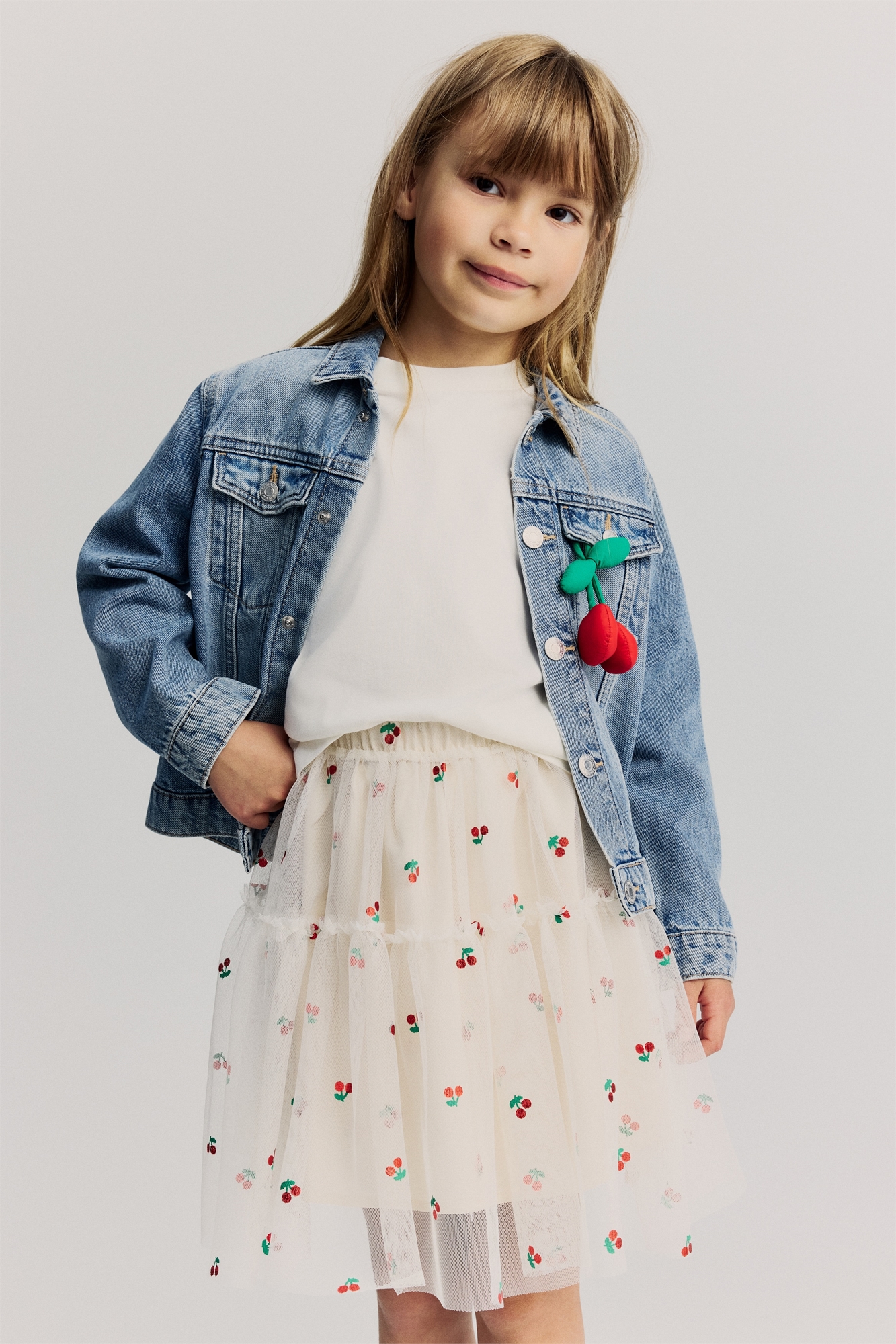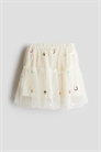 Юбка из тонкого тюля с эластичным поясом и сборкой, отделанной оборками, ниже талии для придания дополнительного объема. На подкладке.