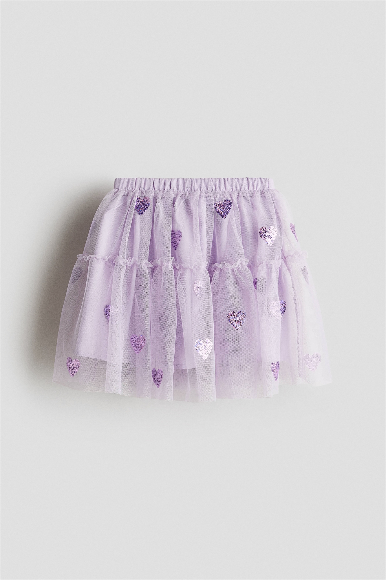 Юбка из тонкого тюля с эластичным поясом и сборкой, отделанной оборками, ниже талии для придания дополнительного объема. На подкладке.