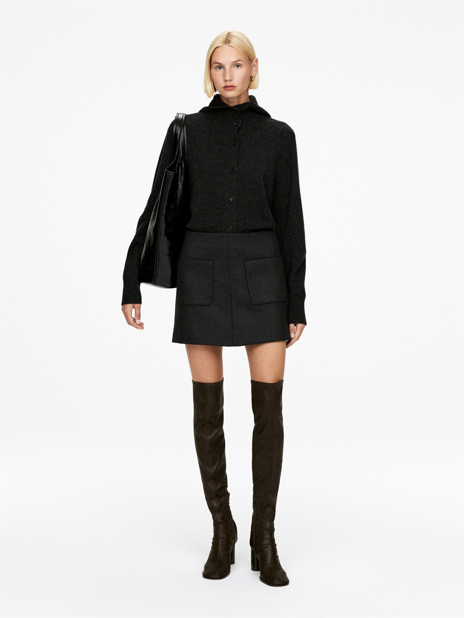 Мини-юбка из шерстяной смеси с карманами спереди и застежкой-молнией по центру сзади. Эта модель содержит 75% шерсти RWS (TE-00047206). Продукция, сертифицированная по стандарту ответственной шерсти (RWS), содержит шерстяное волокно с ферм, прошедших независимую сертификацию на соответствие требованиям по благополучию животных и землепользованию.