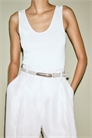 Узкий ремень из ткани с покрытием, овальная металлическая пряжка с застежкой-шпилькой.