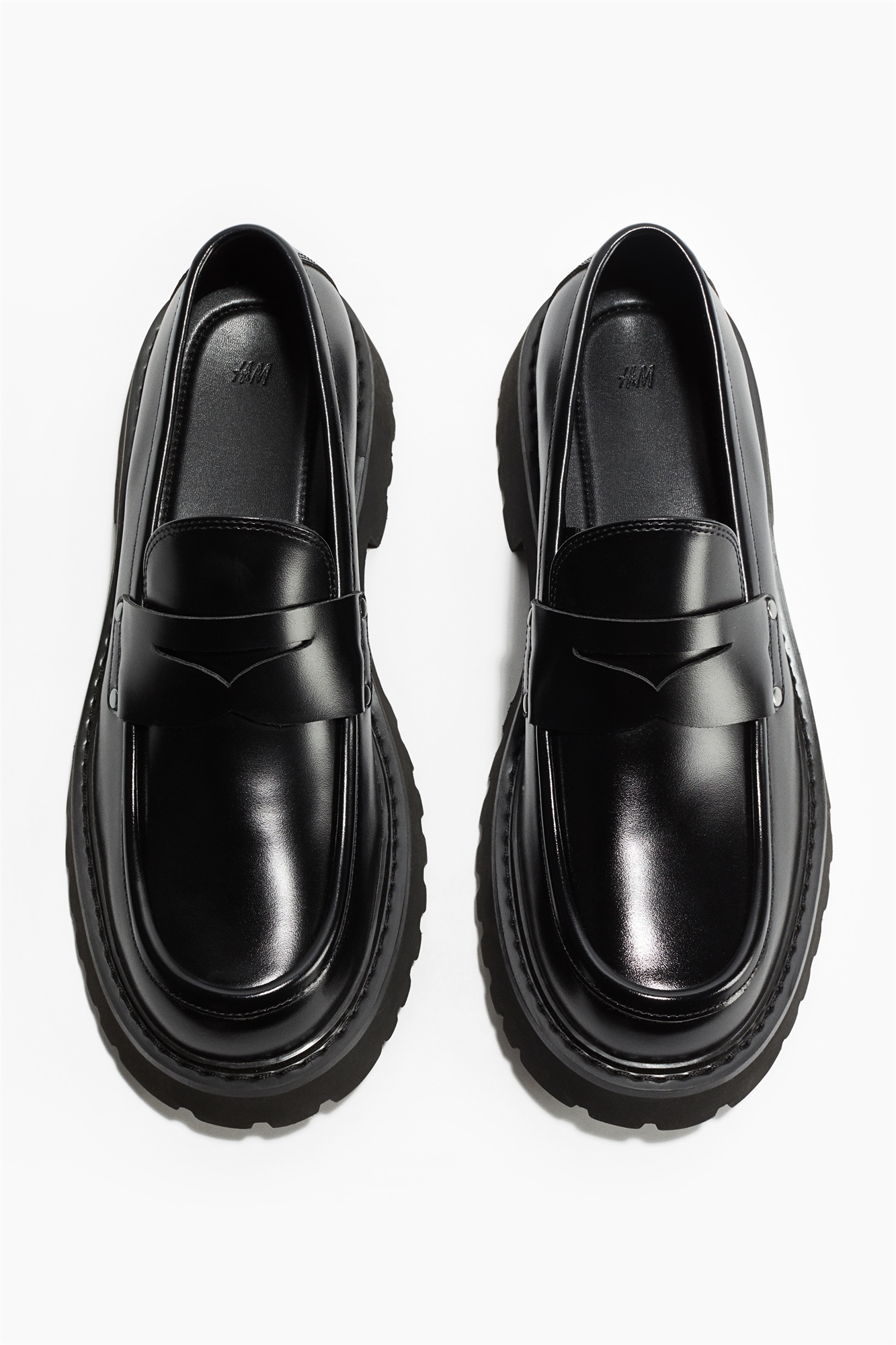 Лоферы с декоративной вкладкой и мокасиновым швом спереди. Подкладка из хлопкового канваса и мохнатая подошва с узором.