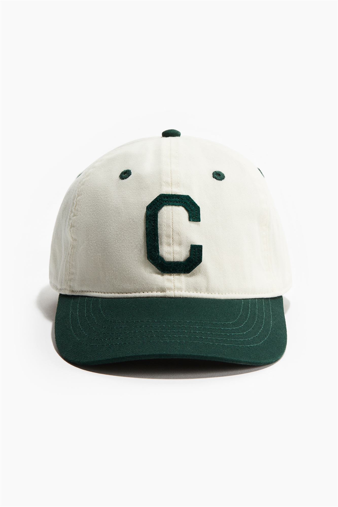 Кепка из хлопковой саржи с вышитым мотивом спереди, вышитыми люверсами сверху и регулируемым язычком с металлической пряжкой сзади. Хлопковый потник.