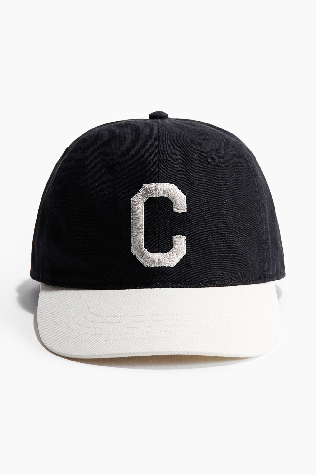 Кепка из хлопковой саржи с вышитым мотивом спереди, вышитыми люверсами сверху и регулируемым язычком с металлической пряжкой сзади. Хлопковый потник.