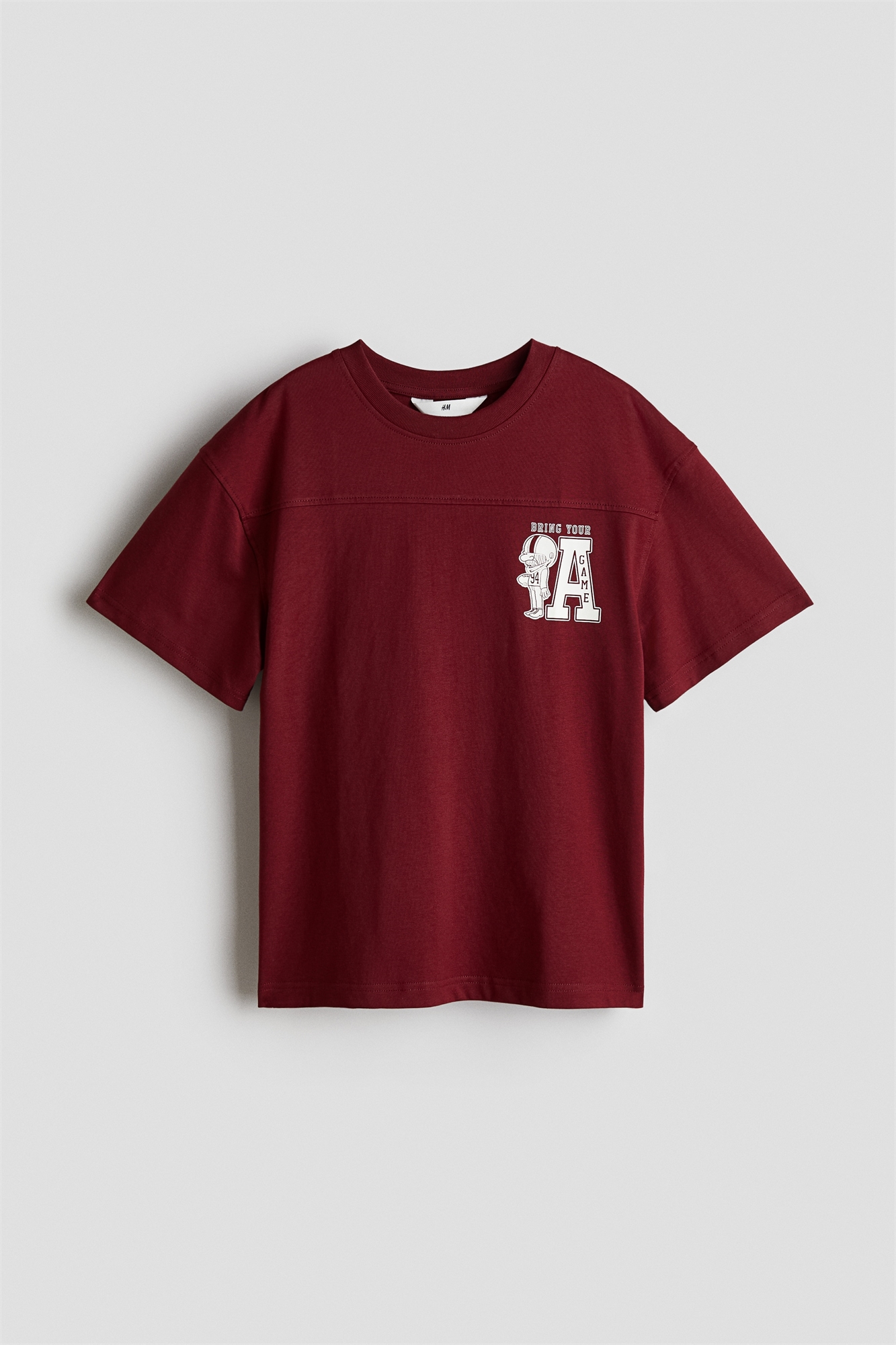 Футболка оверсайз из мягкого хлопкового джерси с набивным рисунком и ярмом спереди. Круглый вырез с ребристой отделкой и спущенные плечи.