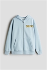 Толстовка из толстовочной ткани с мягким начесом внутри и деталями из мотивов. Капюшон на подкладке, застежка-молния спереди, спущенные плечи, длинные рукава и передние карманы. Ребристые манжеты и подол.