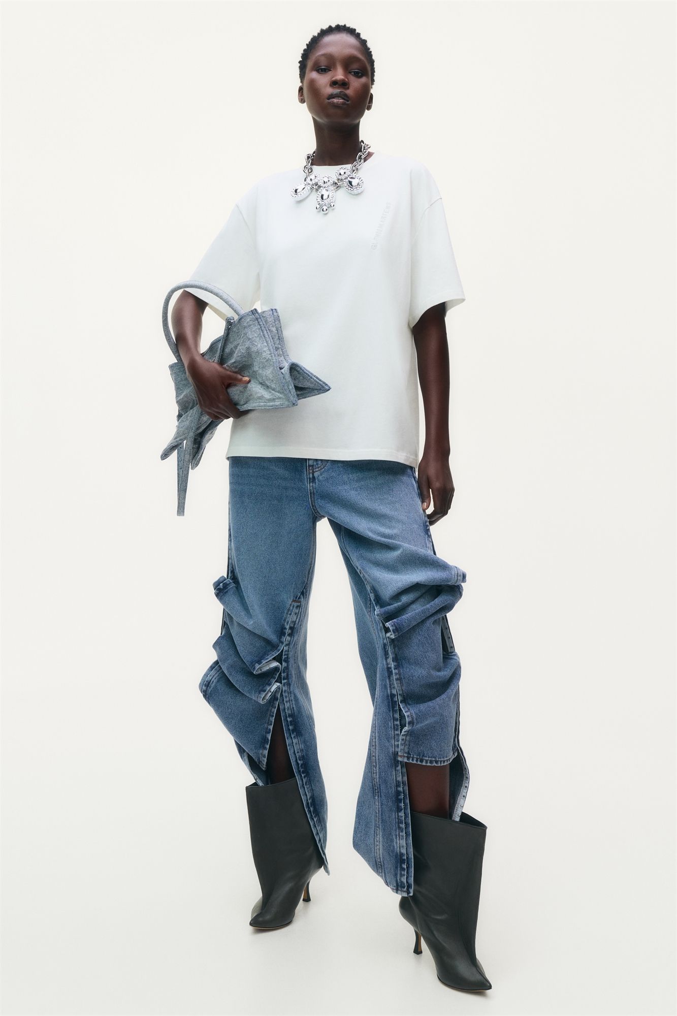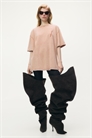 Свободная футболка из мягкого хлопкового джерси с вышитым на груди логотипом дизайнера. Ребристая горловина, спущенные плечи и рукава, заканчивающиеся чуть выше локтей.