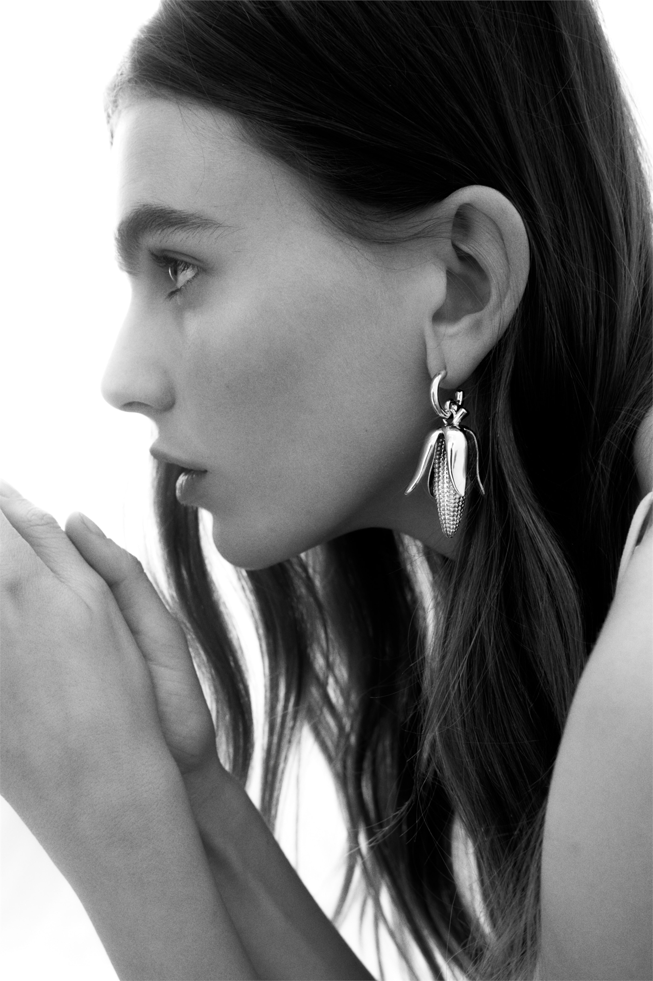 Двухцветные металлические серьги-обручи с подвеской в виде кукурузного початка - игривая нотка в вашем наряде.