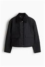 Короткая, слегка подбитая куртка из стеганого нейлона с воротником и узкой отделкой из вельвета. Застежки на кнопках спереди и накладные передние карманы с потайными кнопками. Спущенные плечи, длинные рукава и прямой подол. На подкладке.