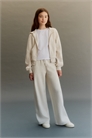 Джоггеры из футера с мягкой ворсистой внутренней стороной. Свободный крой с узкой эластичной резинкой и утягивающим шнурком на талии, незаметные боковые карманы и прямые ноги.