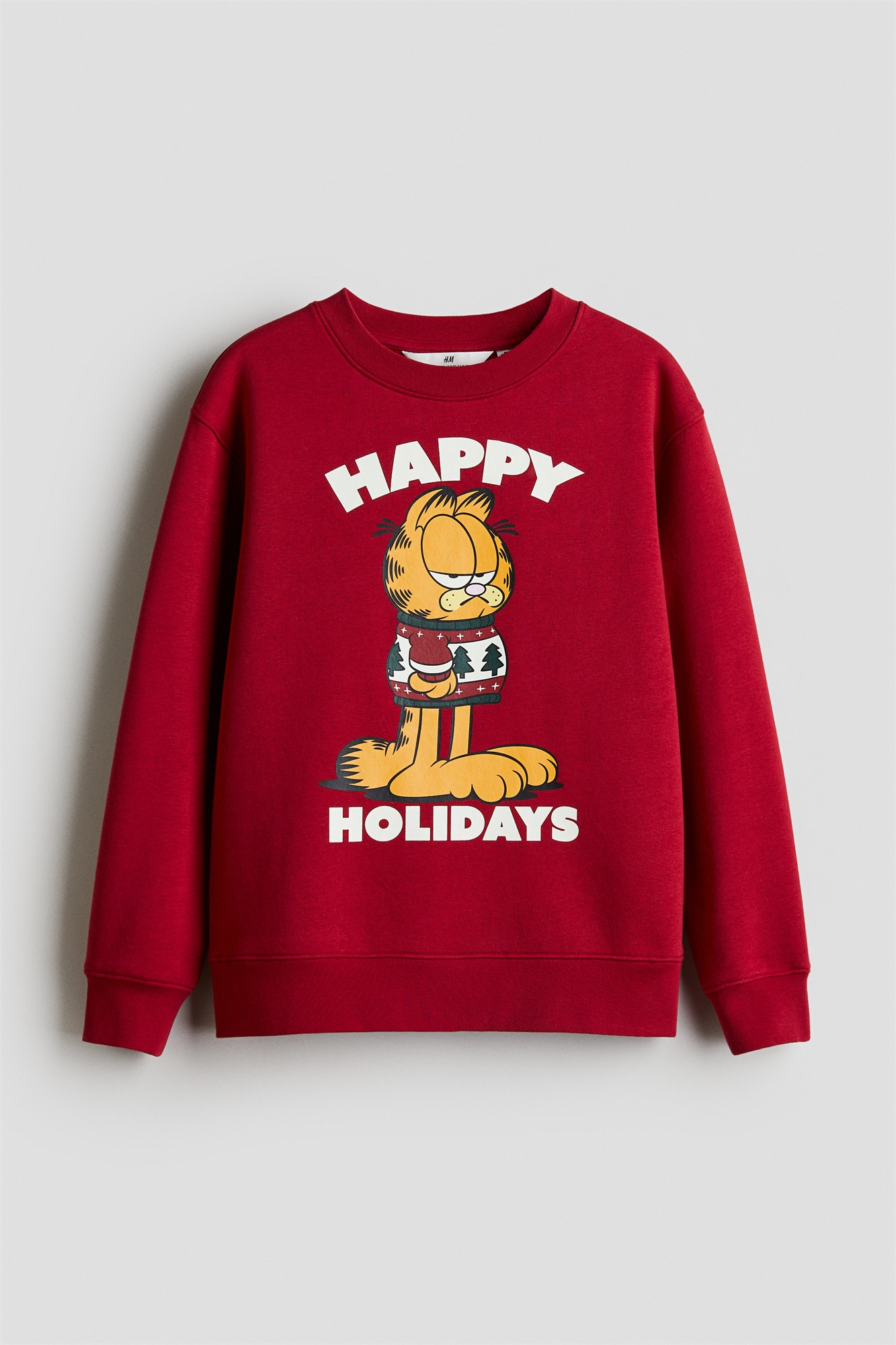 Топ из принтованной толстовки с мягким начесом внутри. Свободный крой с круглым вырезом в рубчик, спущенные плечи, длинные рукава, манжеты и подол в рубчик.