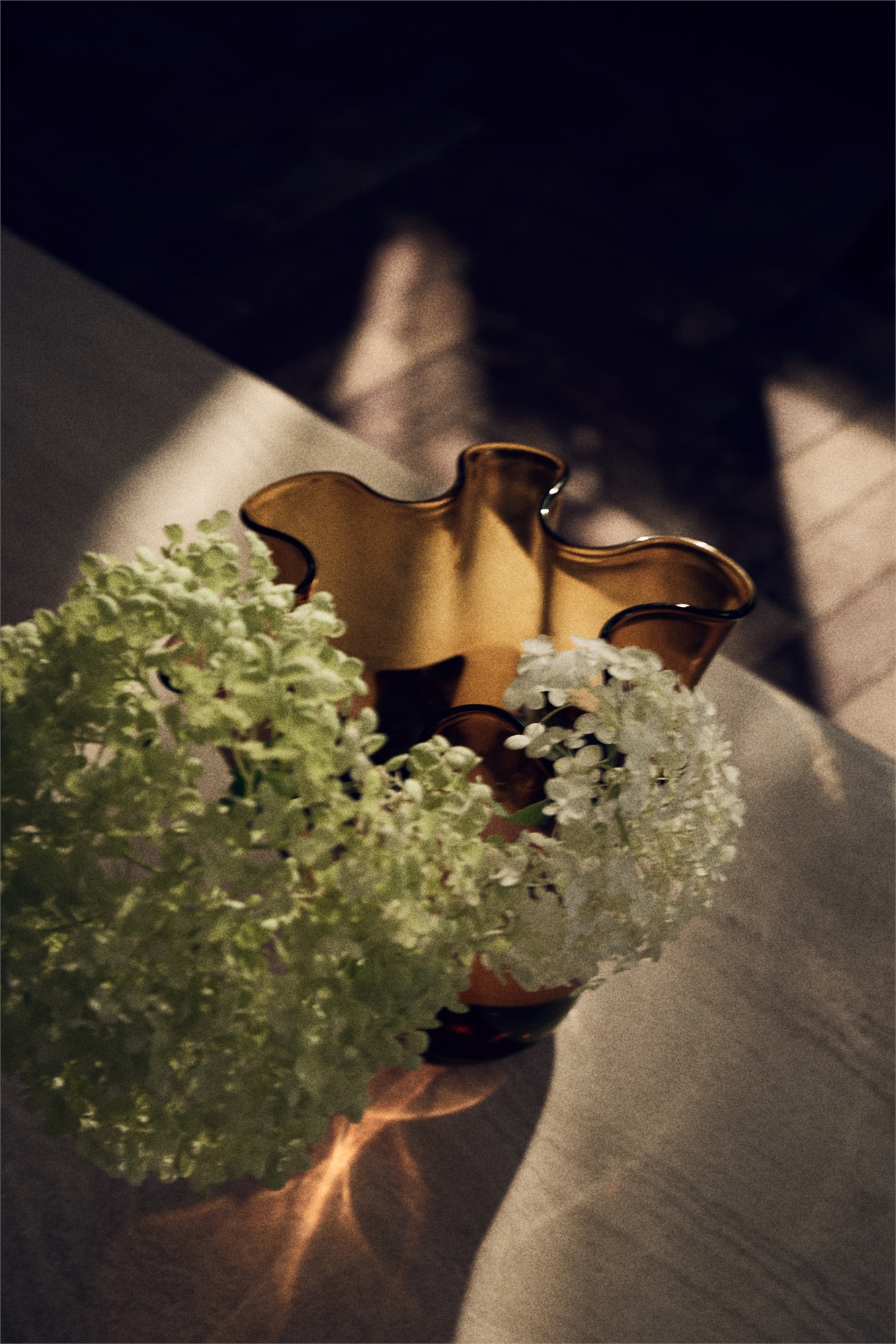 Большая стеклянная ваза в плавном современном дизайне с ободком ручной формы, который делает каждую вазу уникальной.