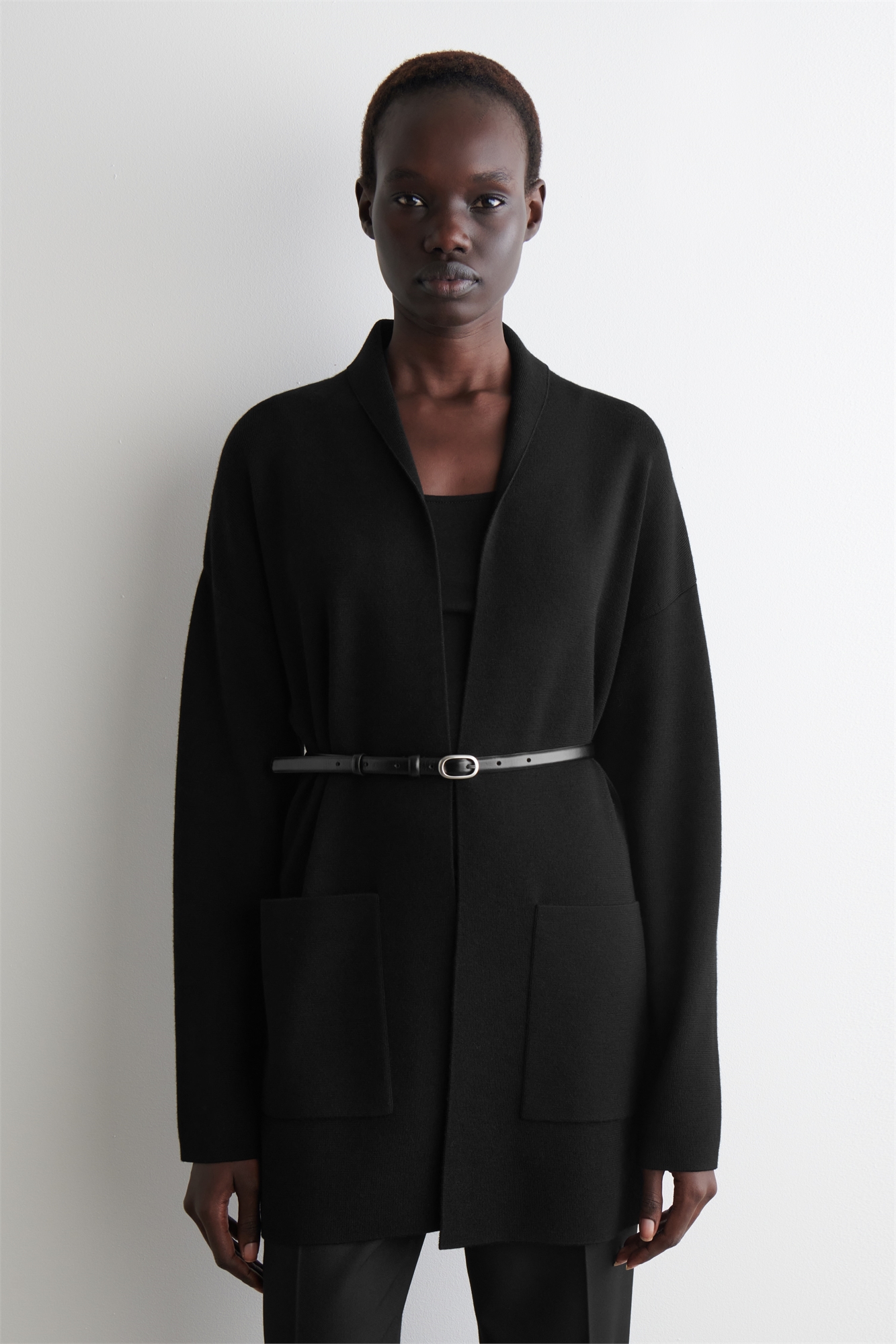 В этом сезоне современные детали дизайна придают классике гардероба новое звучание. Этот удлиненный кардиган из ультрамягкой мериносовой шерсти с драпированным воротником и накладными карманами спереди. Он станет основой переходных многослойных образов. Regular fitЭто изделие содержит шерстяное волокно Responsible Wool Standard TE-00047206 (RWS) с ферм, сертифицированных в соответствии с требованиями к благополучию животных и землепользованию Материал: 100% мериносовая шерсть. Без учета отделки / Машинная стирка Длина по спинке для размера S составляет 79 см / Модель носит размер S