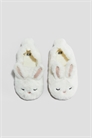 Уютные тапочки из мягкой пушистой ткани с аппликацией спереди. Эластичная резинка вокруг отверстия и петля сзади. Пушистая подкладка и стелька. Мягкая подошва с противоскользящими накладками.