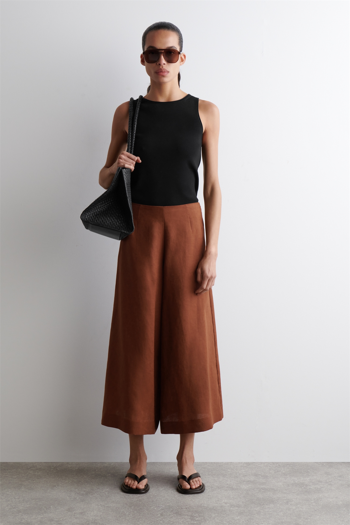 Льняные брюки с широкими штанинами