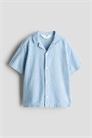 Рубашка с короткими рукавами из мягкого хлопкового ситцевого полотна с отложным воротником, пуговицами спереди и спущенными плечами.