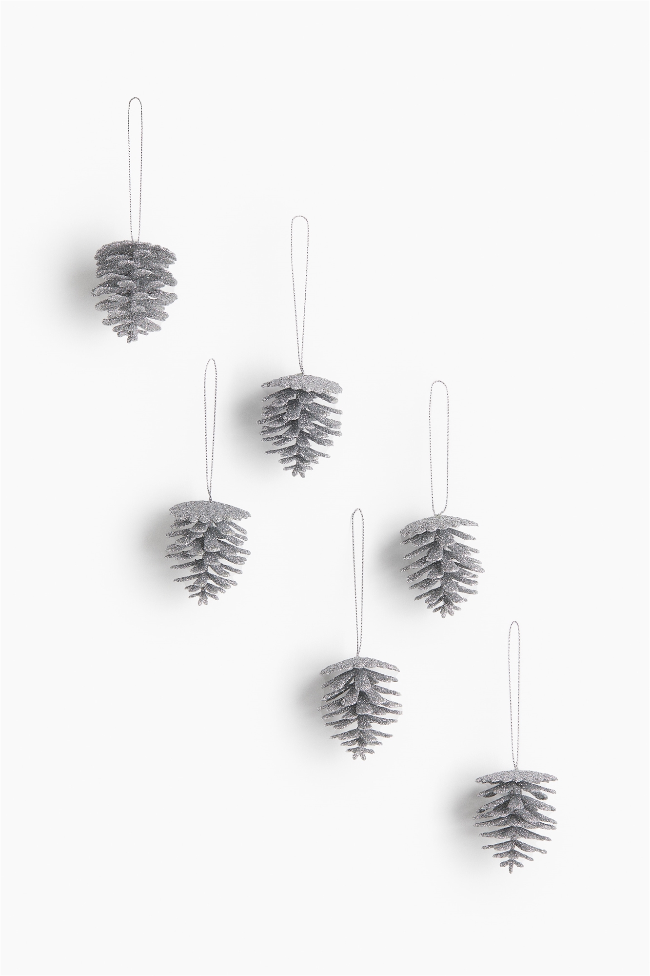 Набор из шести пластиковых сосновых шишек с блестящей отделкой. Разместите их на елке, в витрине или в центре праздничного оформления, и они придадут вашему помещению праздничный блеск.