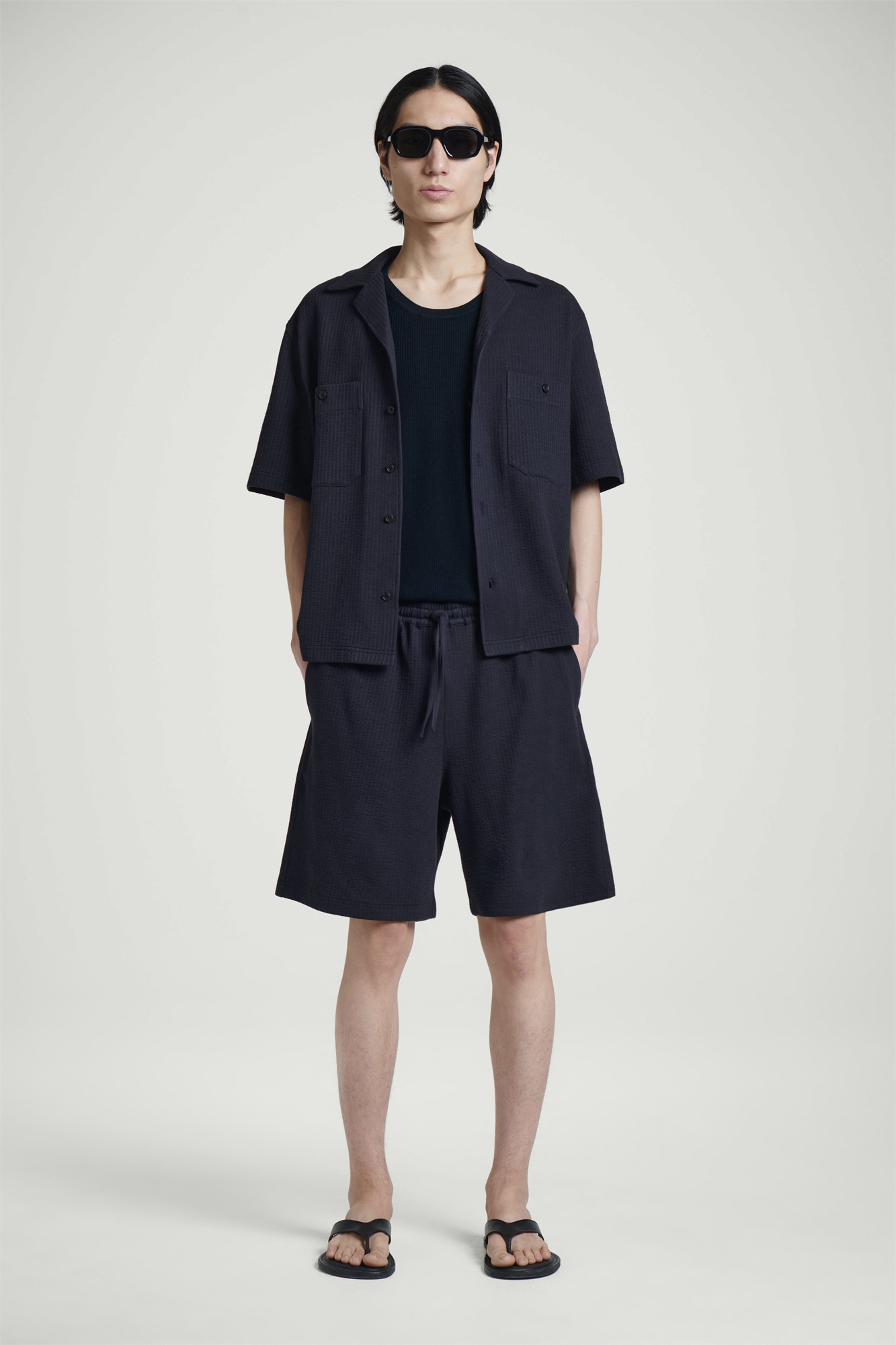 Легкие ткани и непринужденные формы возглавляют коллекцию Summer 2025. Эти шорты, выполненные в нестареющем темно-синем цвете, сшиты из фактурного хлопка-сырца, имеют эластичный пояс с утягивающим шнурком и практичные карманы сбоку и сзади. Подберите к ним подходящую рубашку. Свободный крой Ткань: 97% хлопка, 3% эластана. Подкладка карманов: 100% хлопок. Без учета отделки / Машинная стирка Внутренняя длина штанины размера M составляет 18,6 см / Модель носит размер M