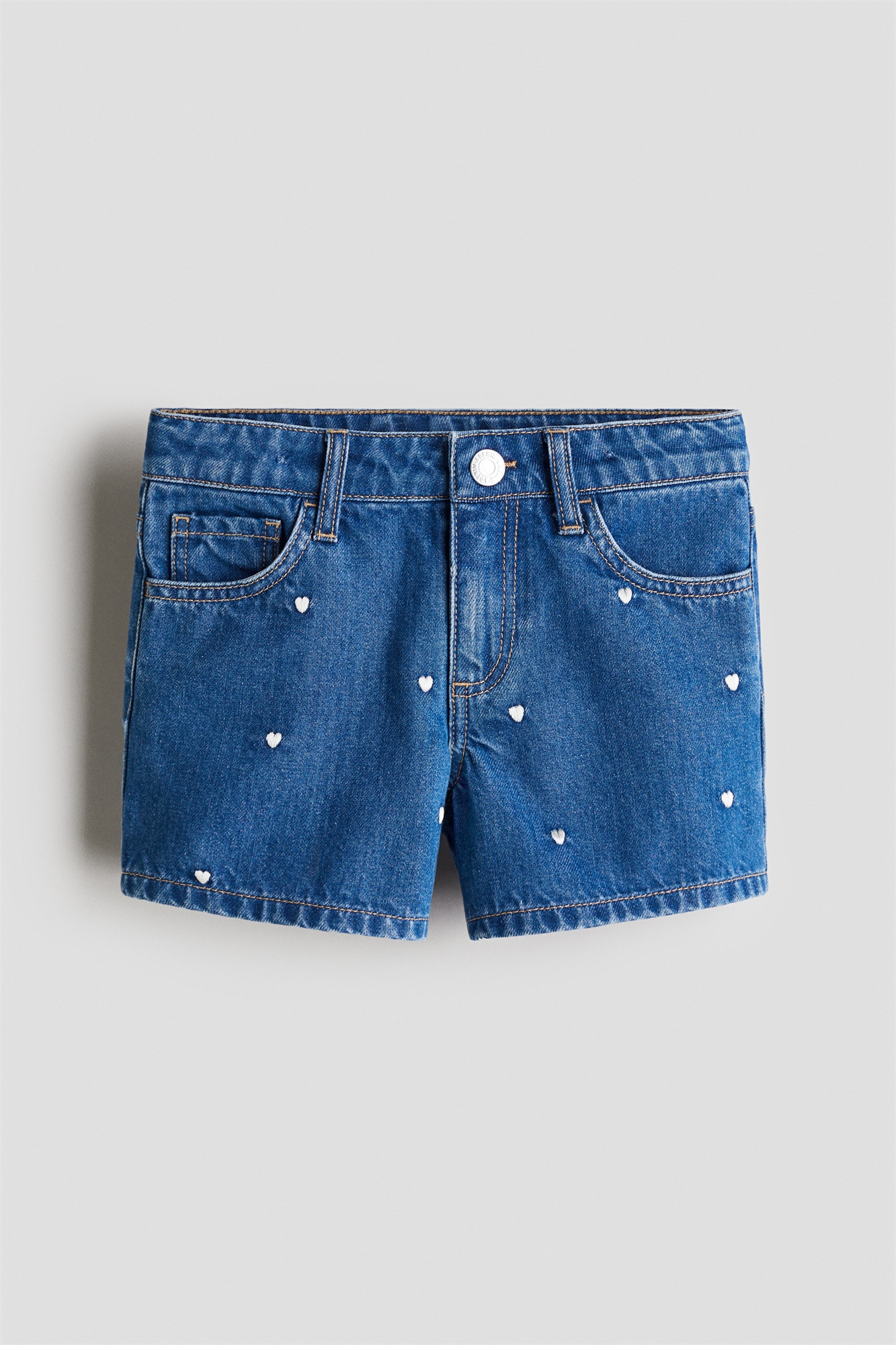 Шорты с 5 карманами из мягкого хлопкового денима с вышитыми деталями. Пояс на талии с регулируемым эластичным шнурком, ширинка на молнии и шпилька.