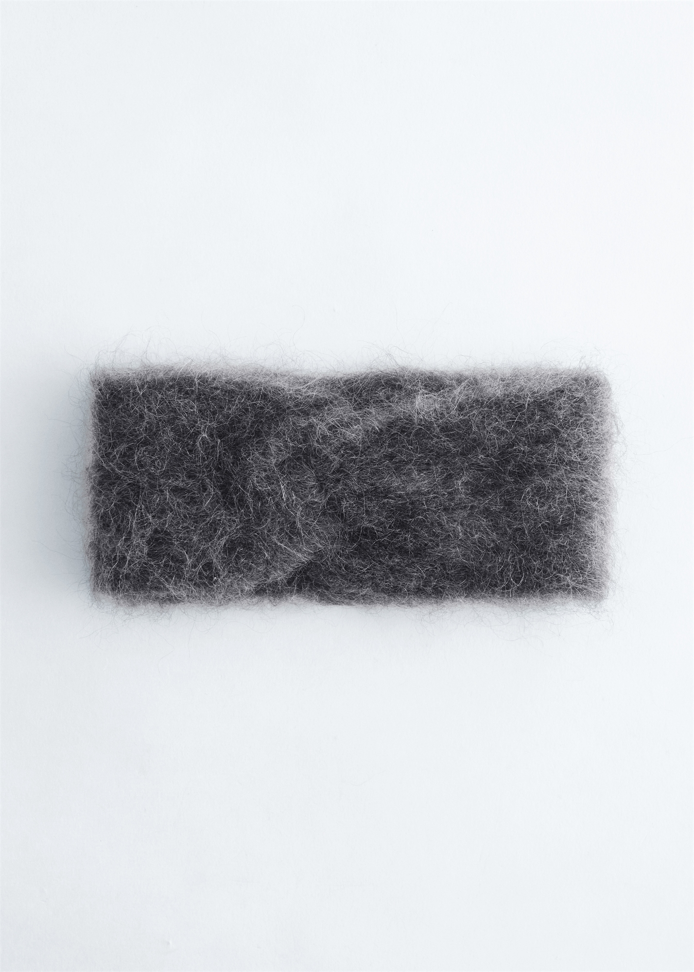 Эта повязка на голову из смеси мохера и шерсти с матовой отделкой украшена центральным узлом. 38% RMS Мохер TE-00047206 38% RWS Шерсть TE-00047206 Ширина: 11,5 см / 4,5”