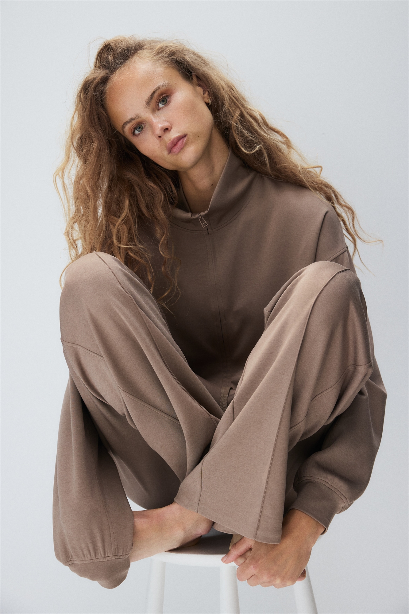 Брюки из супермягкого джерси с эластичным поясом на завязках, незаметными боковыми карманами и прямыми ногами с застроченными складками спереди.