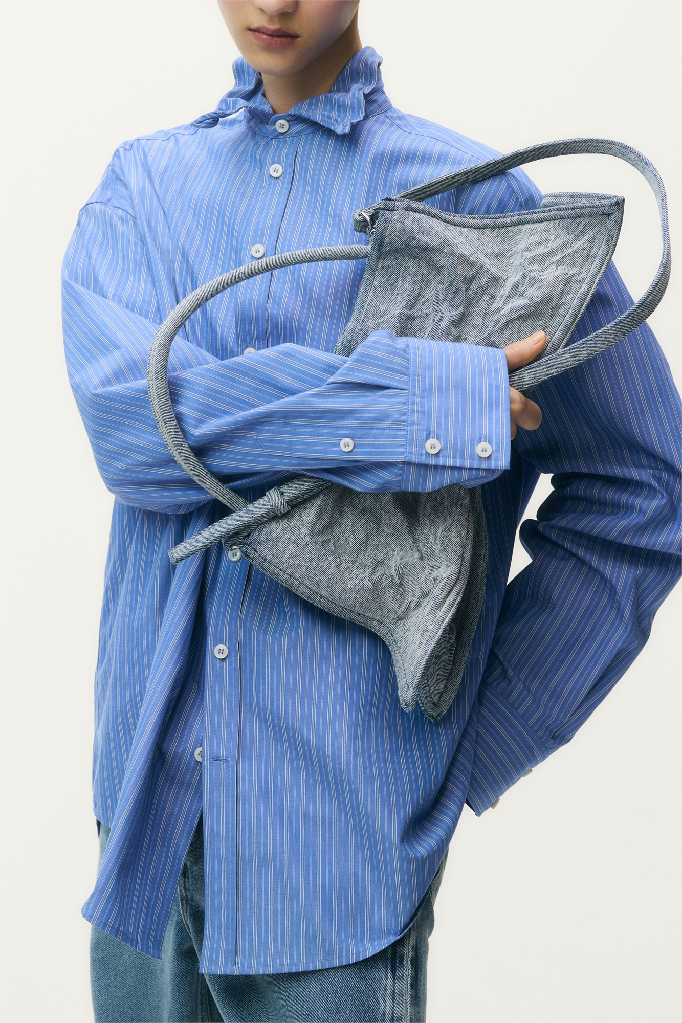 Сумка через плечо, усиленная объемной оболочкой с фольгированной подкладкой, которая придает изделию структуру и позволяет придать ему помятый, деформированный вид. Спереди украшена логотипом дизайнера из полированного металла. Трубчатая ручка и съемный регулируемый плечевой ремень с металлической пряжкой. Во внешнем корпусе расположен кармашек меньшего размера с застежкой-молнией сверху и небольшим внутренним отделением с нашивкой с логотипом дизайнера.