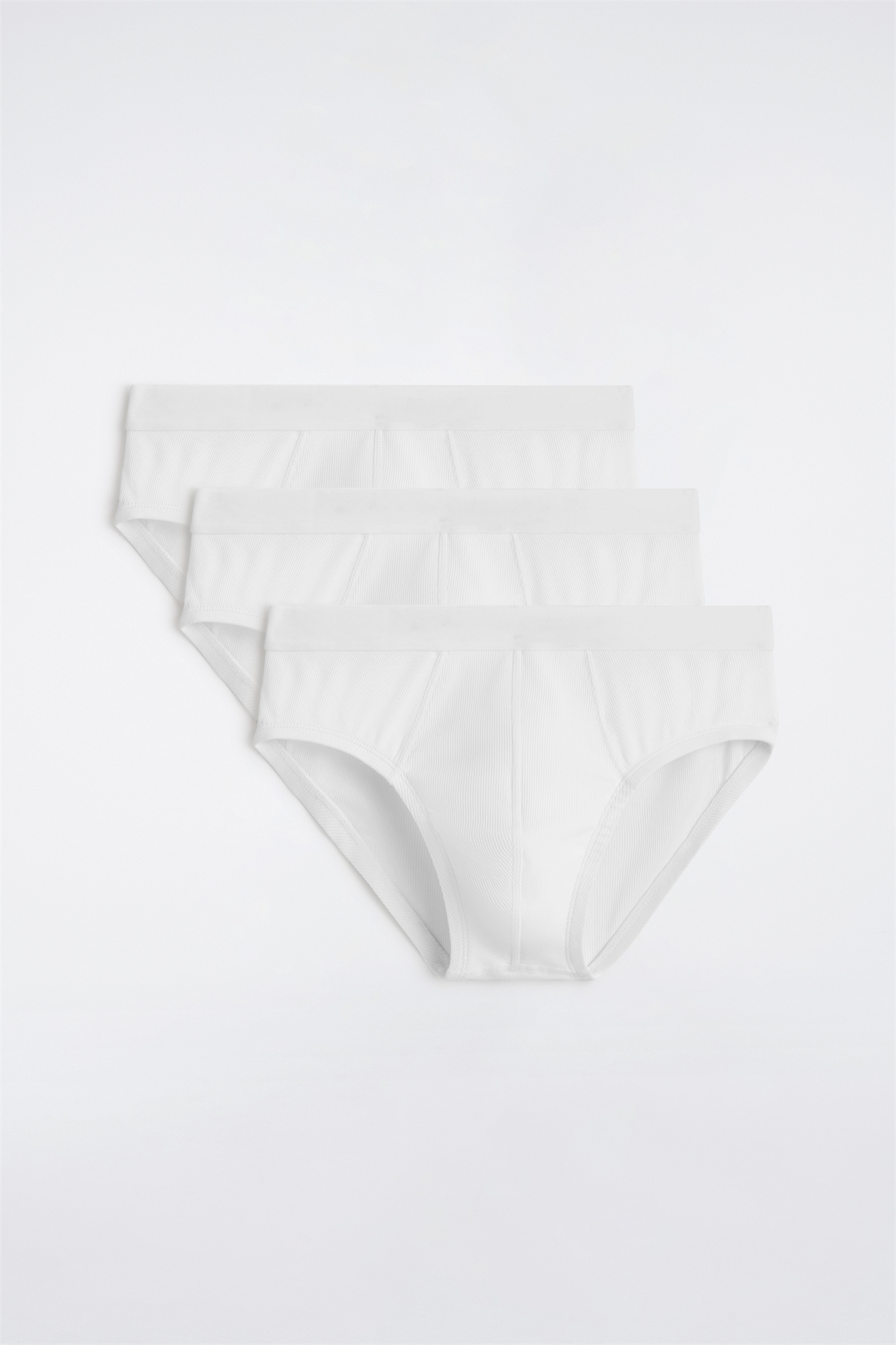 Это три комплекта ребристых трусов пополнят ваш ящик с предметами первой необходимости. Они изготовлены из джерси из смеси органического и переработанного хлопка и снабжены эластичным поясом для комфортной посадки.