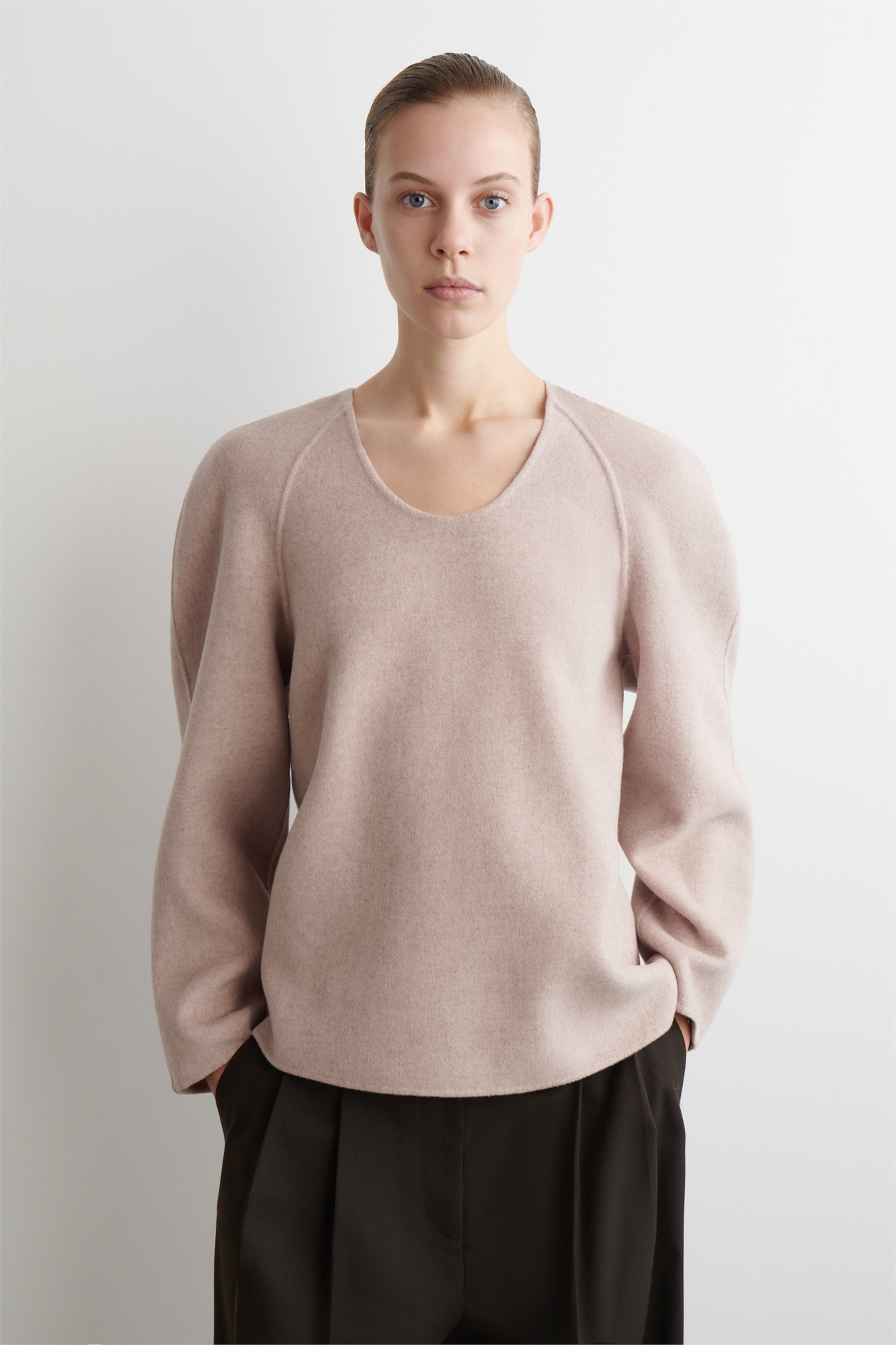 Минималистичные фасоны в универсальных цветах характеризуют женскую коллекцию этого сезона. Этот элегантный топ изготовлен из мягкой шерстяной смеси с двусторонней отделкой. Он имеет свободный крой, округлый вырез и длинные рукава. Свободный кройЭто изделие содержит волокна шерсти Responsible Wool Standard TE-00047206 (RWS) с ферм, сертифицированных в соответствии с требованиями к благополучию животных и сельскому хозяйству Внешний материал: 60% шерсть RWS, 40% TENCEL™ Lyocell. Детали исключены/Сухая чистка Длина по спинке в размере ЕС 36 = 63,1 см/Модель носит размер ЕС 36