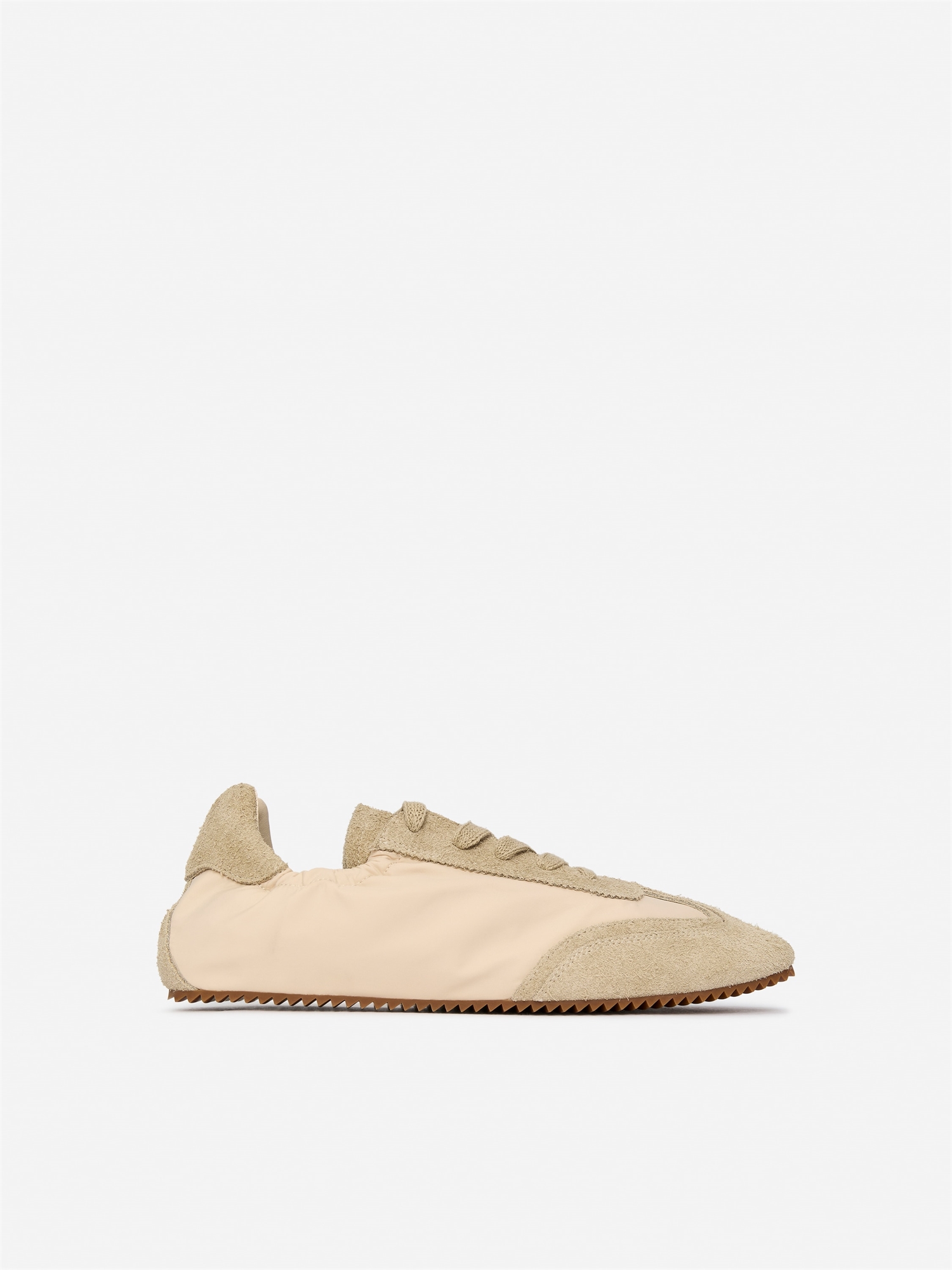Кроссовки в ретро-стиле, изготовленные из замши и нейлона, с шнурками и эластичным манжетом для удобства надевания. Отделка с декоративной строчкой.