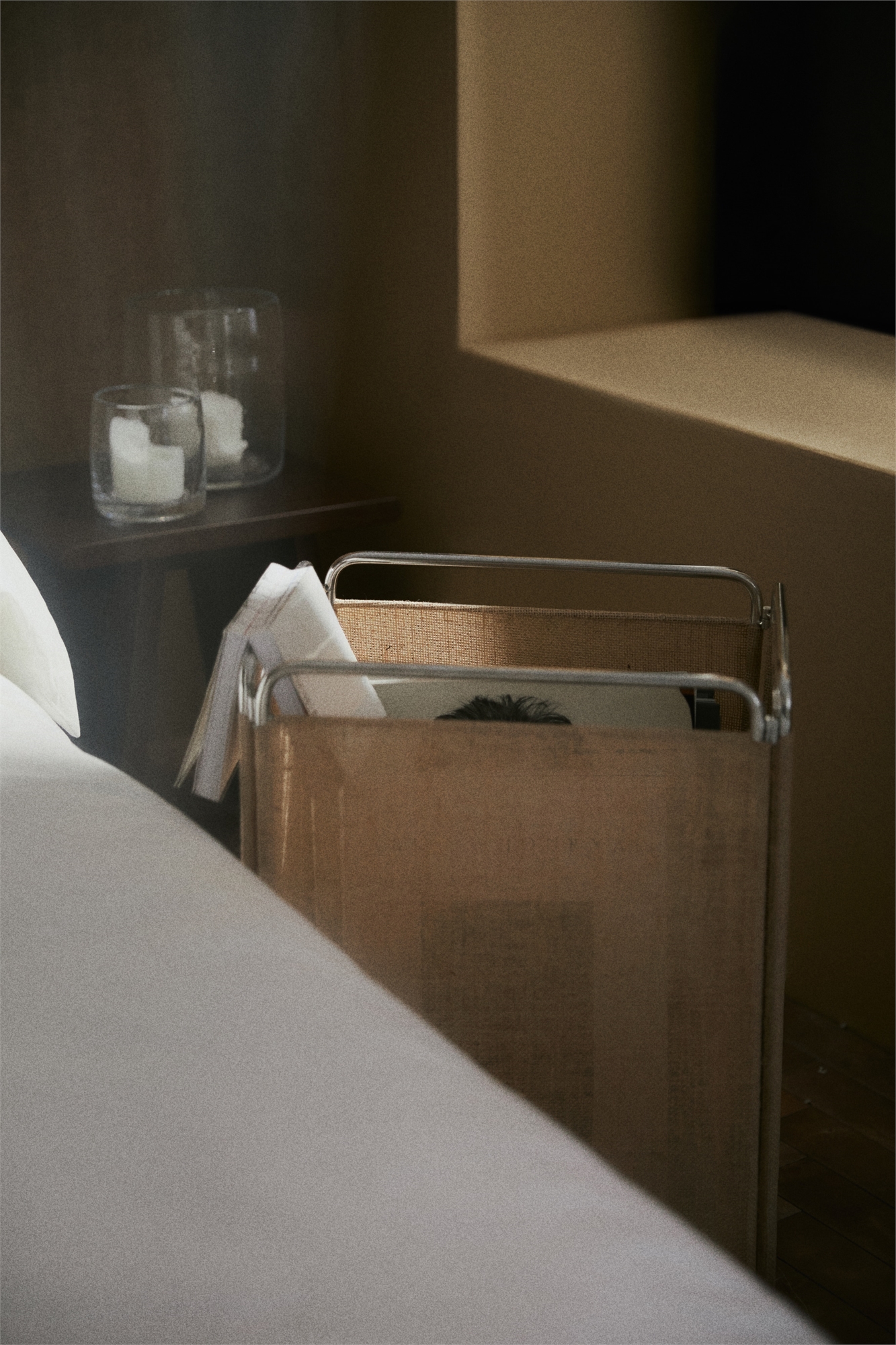 Высокая корзина для хранения из хлопкового плетения в деревенском стиле с прочным металлическим каркасом и основанием из МДФ для дополнительной устойчивости. Корзина складывается, что позволяет легко хранить ее в небольших помещениях, когда она не используется.