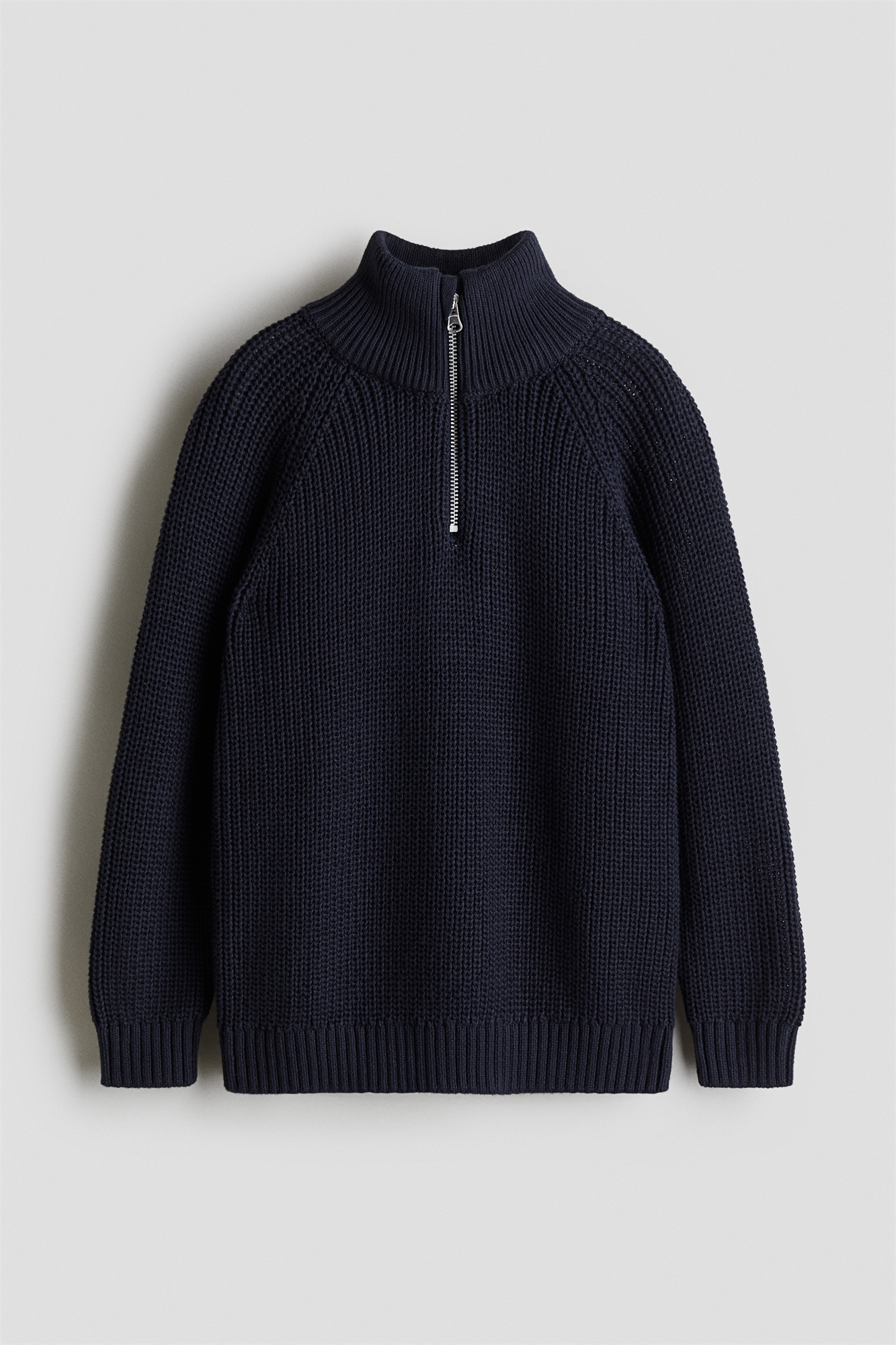 H&M Adorables. Джемпер из мягкого лакированного хлопка с ребристым воротником-стойкой и застежкой-молнией в верхней части. Длинные рукава реглан и широкая окантовка манжет и подола. Коллекция H&M Adorables - это подборка удобных и качественных вещей, которые не подвластны времени.