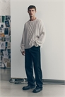 Джинсы с 5 карманами, сшитые из жесткого хлопкового денима, с прямыми штанинами и свободным кроем от сиденья до подола, с опущенной промежностью и дополнительной свободой по всей длине штанины, сложенной у лодыжки. Витые швы на ногах. Регулярная талия и ширинка на пуговицах.