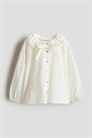 H&M Adorables. Блузка из высококачественного хлопка с мягким, воздушным плетением, украшенная бантом. С круглым вырезом с оборками, застежкой на пуговицы спереди и длинными объемными рукавами реглан с узкими эластичными манжетами. Предварительно завязанный бант снабжен регулируемым эластичным ремешком и пластиковой застежкой. Коллекция H&M Adorables - это подборка удобных и качественных вещей, которые не подвластны времени.